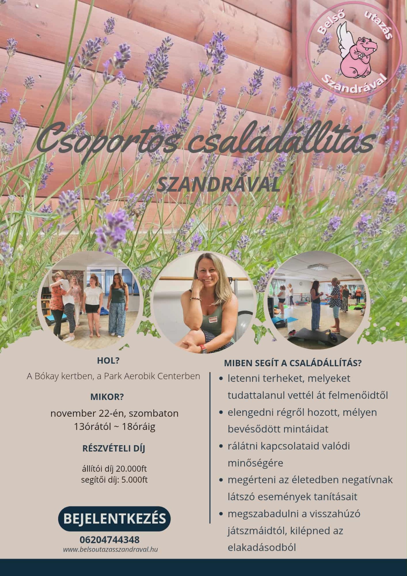 "Szandrával a családállításon vettem részt többször is. Szandra biztonságos légkört teremt, nagyon (oda)figyel mindenkire a térben és azon van, hogy a legmélyebb segítséget tudja adni. Szépen rávezet és megmutatja a megoldását a problémáknak. Sok színes és érdekes emberrel kapcsolódtam az állítások során és nagyon sok kis csodás és haladást láttam és tapasztaltam. Mindenkinek ajánlom, aki szeretne a saját útján továbblépni."